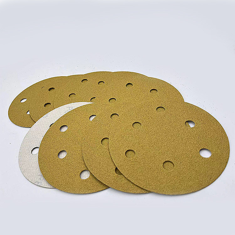 Нажмите, чтобы связаться с нами для пользовательского дюйма Желтый песочный диск крючок и петля Золотой песочный диск Оксид алюминия Сухое использование абразивный песочный диск для автомобильной промышленности